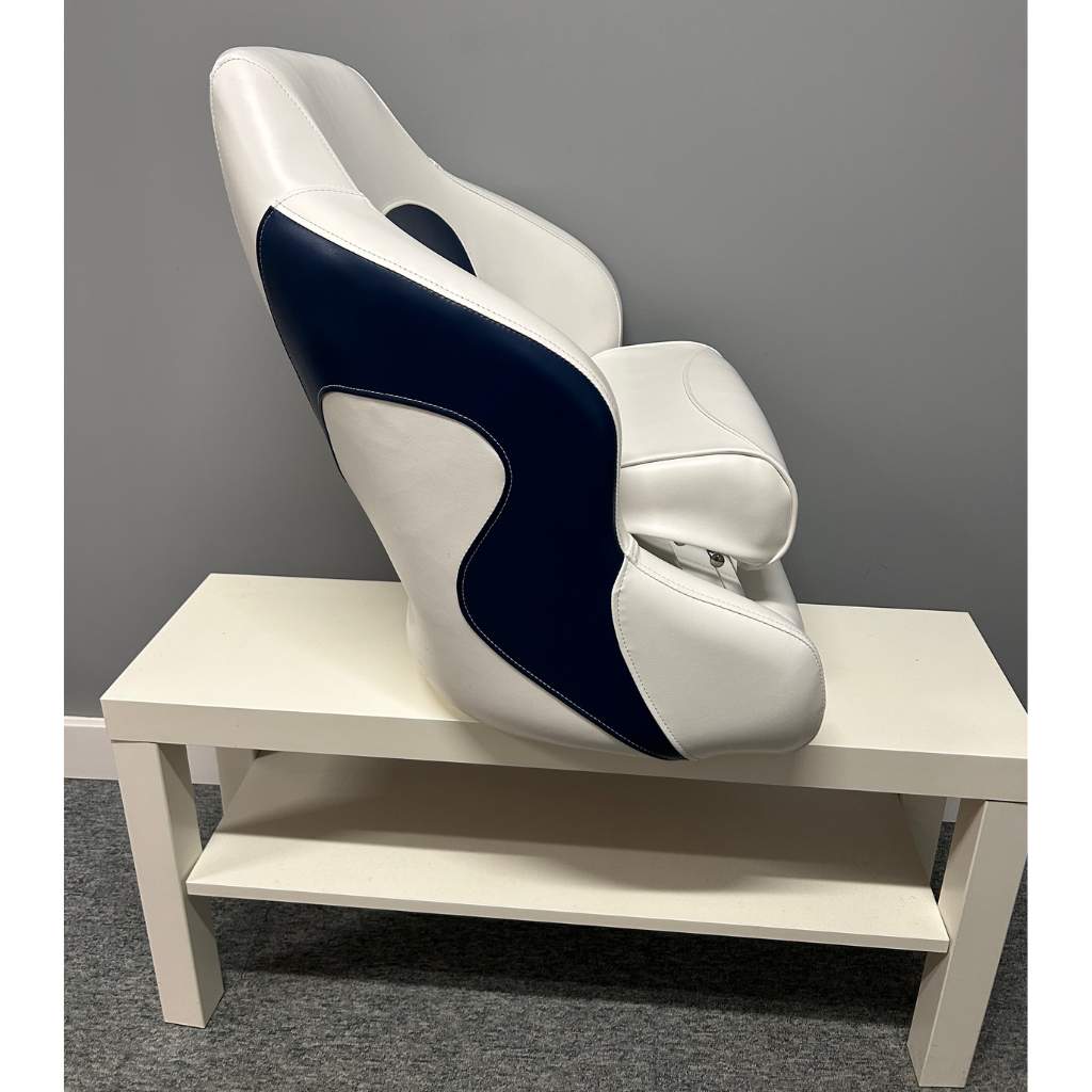 Duży fotel kubełkowy MyBoat z regulacją wysokości fotel kapitana Biało Granatowy