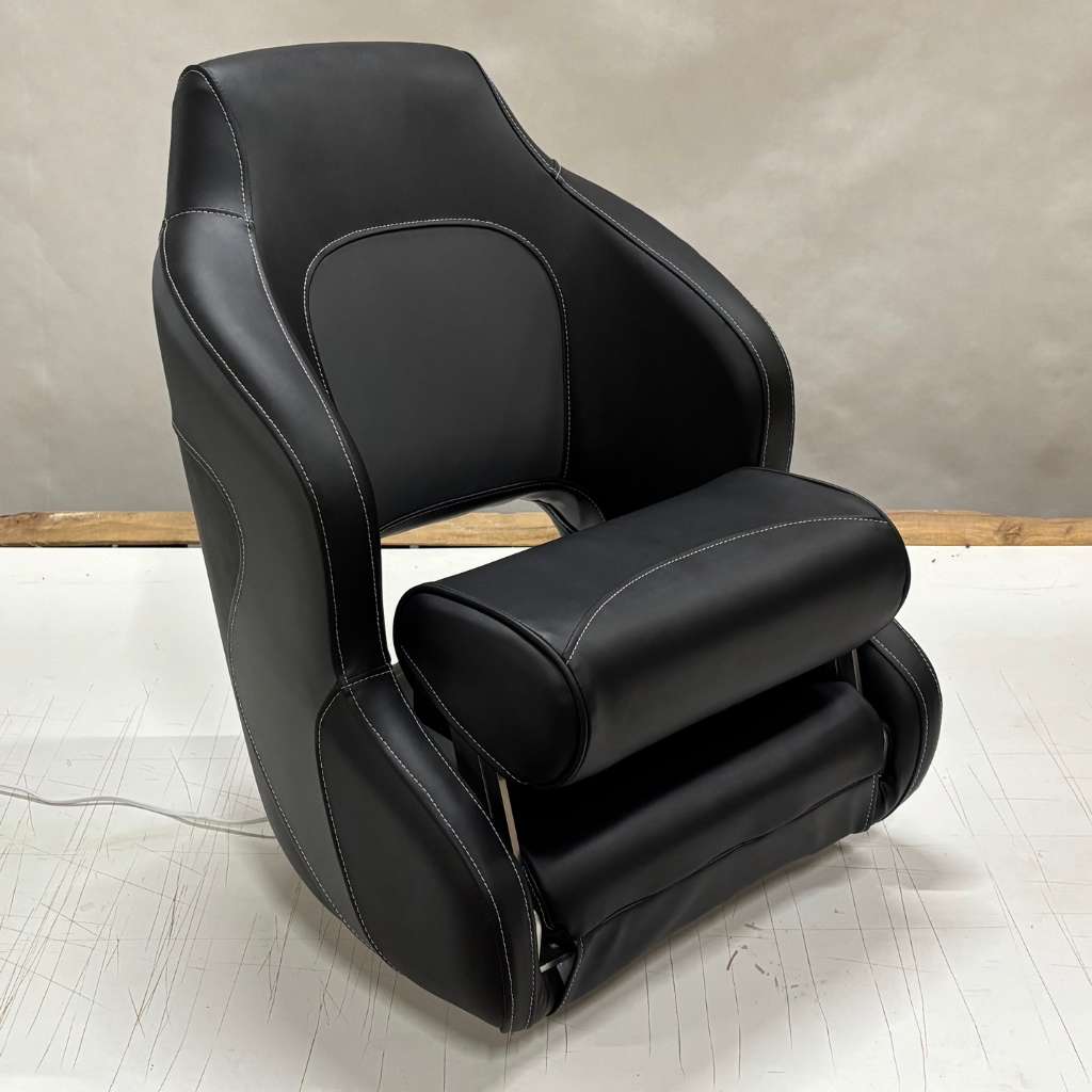 Kubełkowy fotel Kapitański do łodzi MyBoat z regulacją wysokości dla sternika Czarno Grafitowy