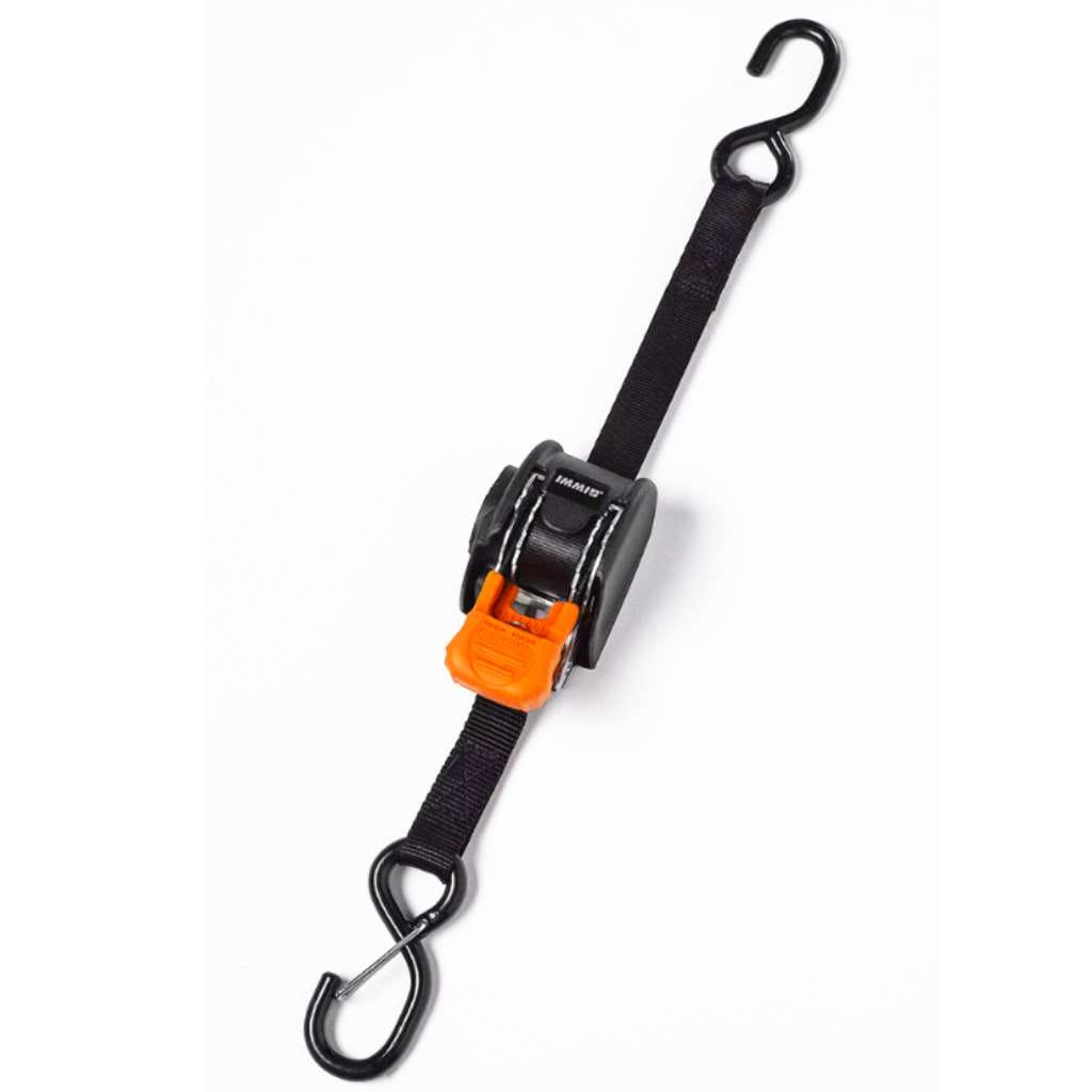 Pas transportowy z automatycznym zwijaniem - szerokość taśmy 2,5 cm, długość taśmy 182 cm - Podwójny Hak montażowy