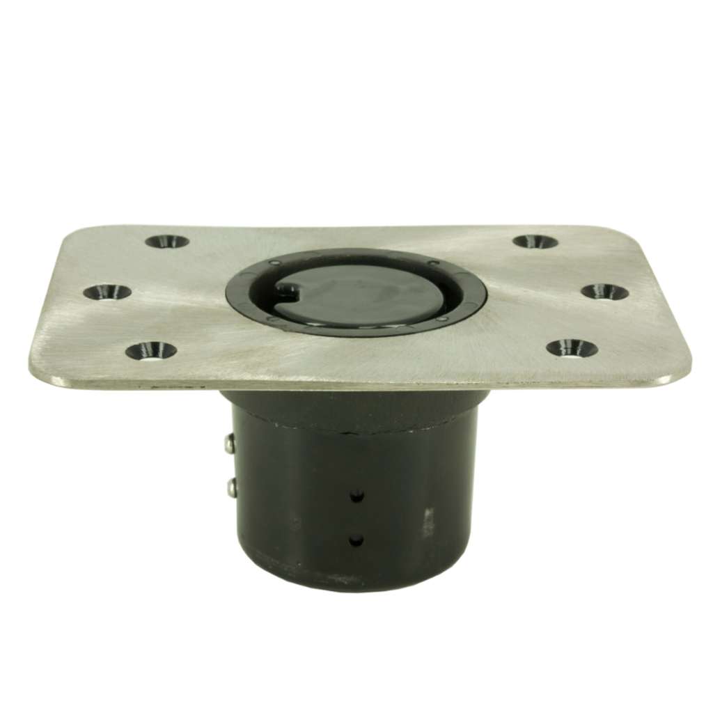 Solidne, stalowe gniazdo podłogowe z serii Plug-In™ Stal Nierdzewna, dedykowane do profesjonalnego montażu foteli na łodziach wędkarskich i turystycznych.