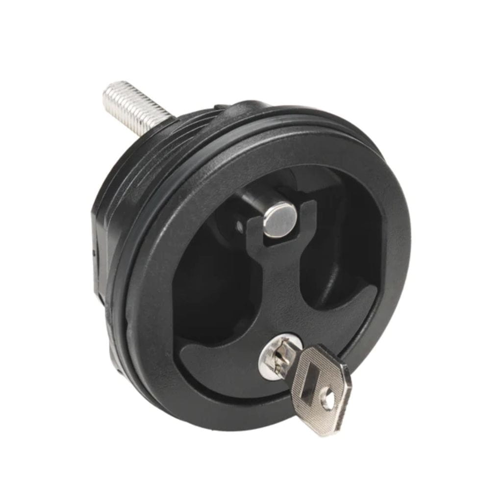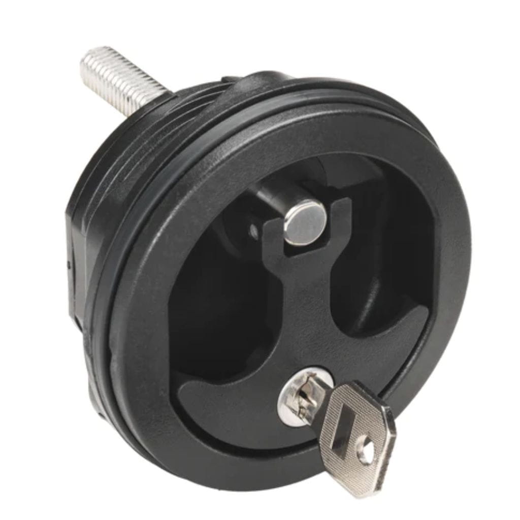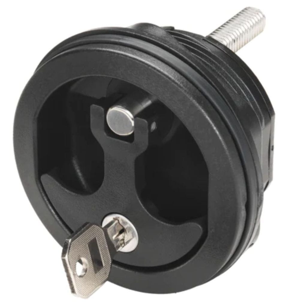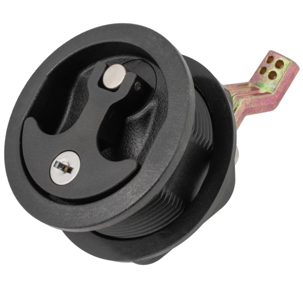 Ten model to zaawansowany zamek do łodzi z dociskiem zamknięcia bakisty (T-style compression handle), który nie tylko chroni zawartość bakisty dzięki solidnemu zamkowi na klucz, ale również kompresyjnie dociska klapę, zapobiegając wibracjom i przedostawaniu się wody podczas trudnych warunków na wodzie.