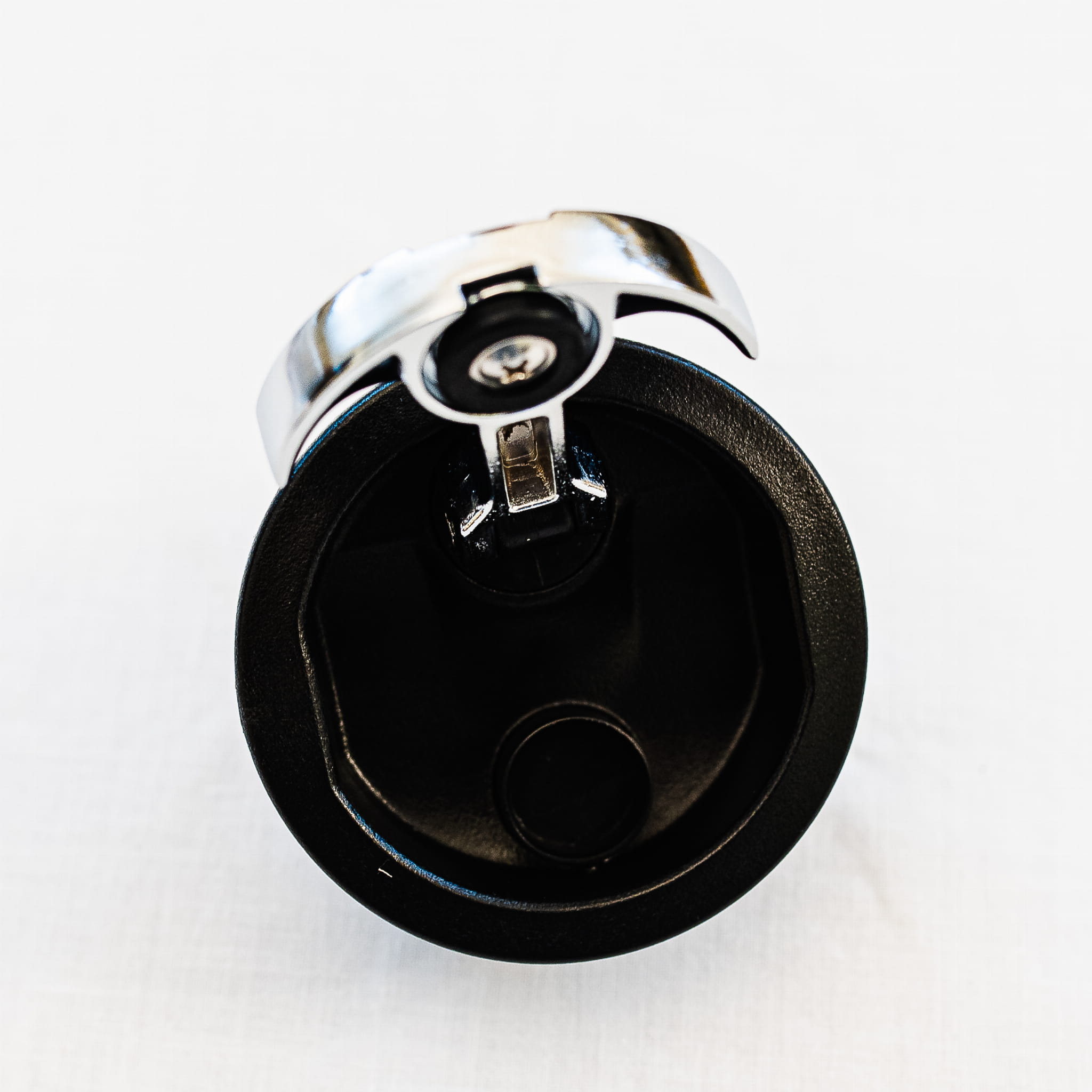 Nowoczesny design: Eleganckie połączenie polerowanego chromu z solidną, czarną podstawą idealnie pasuje do pokładu nowoczesnych łodzi motorowych i jachtów.